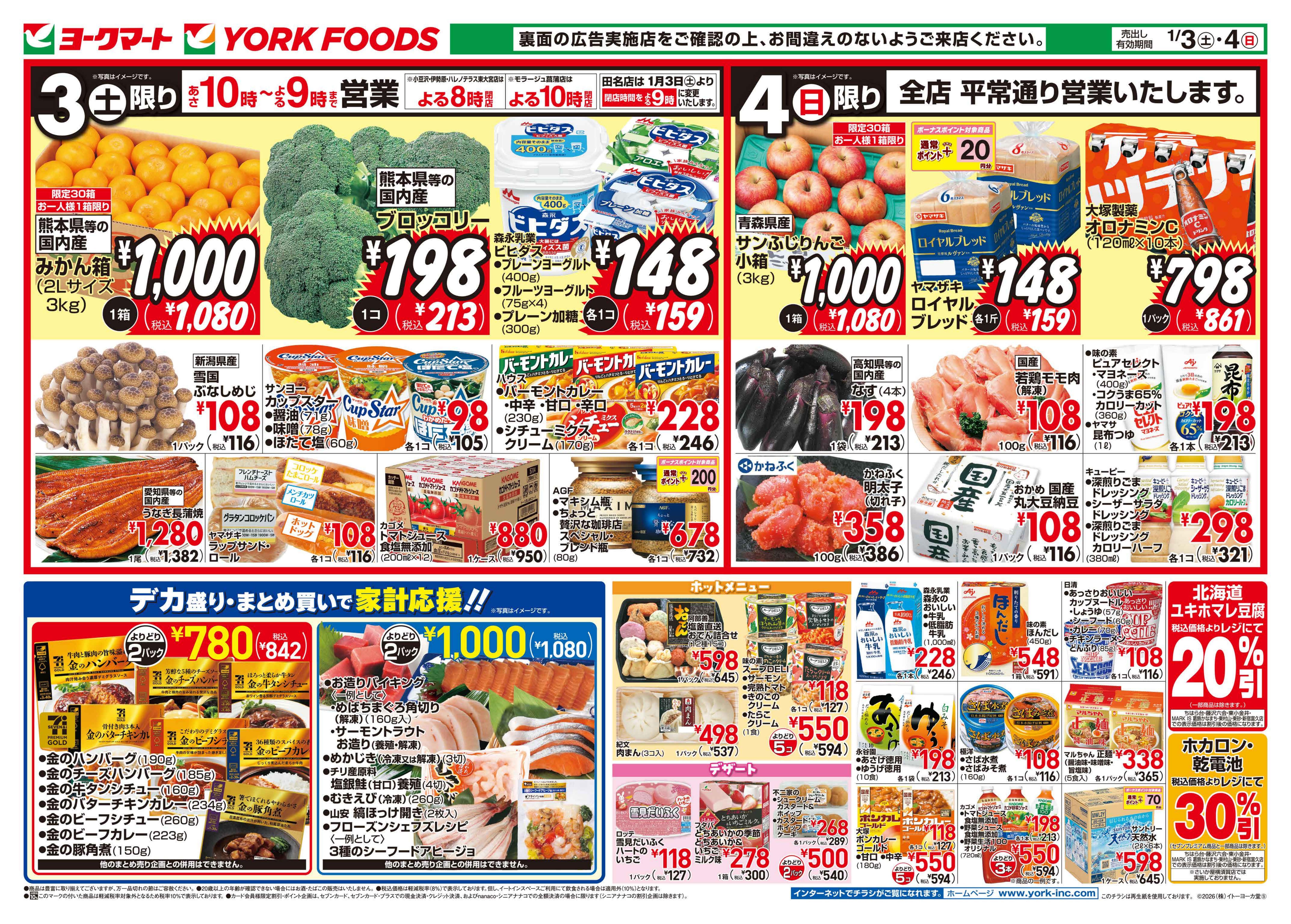 1/3(土)は、あさ10時~よる9時まで営業いたします。